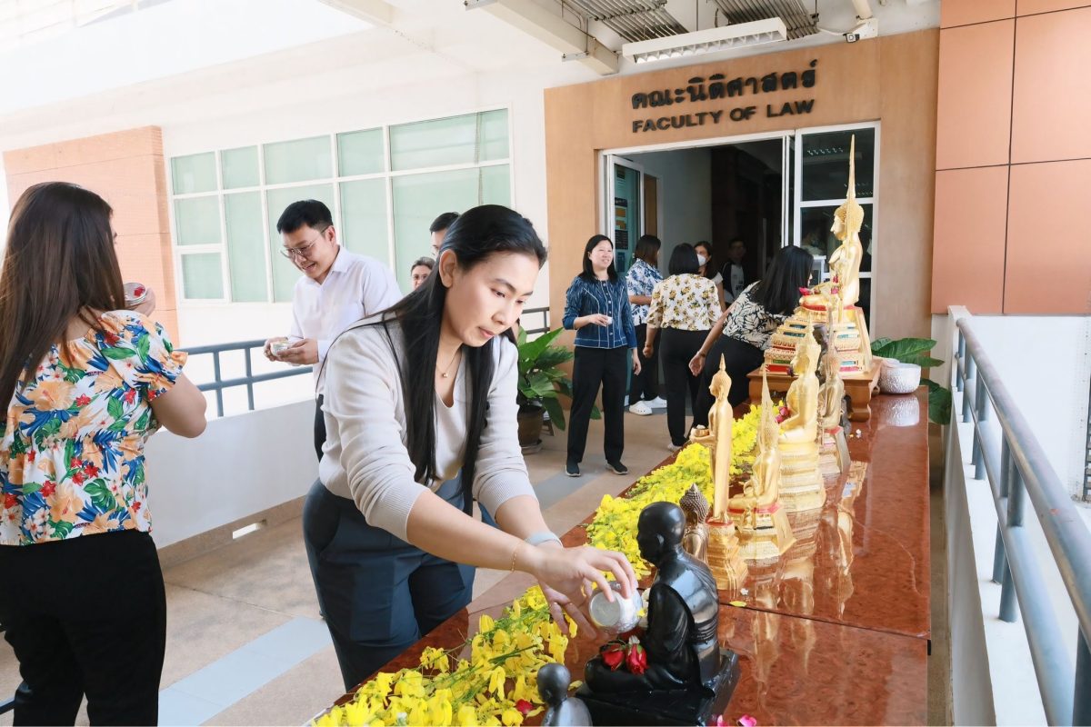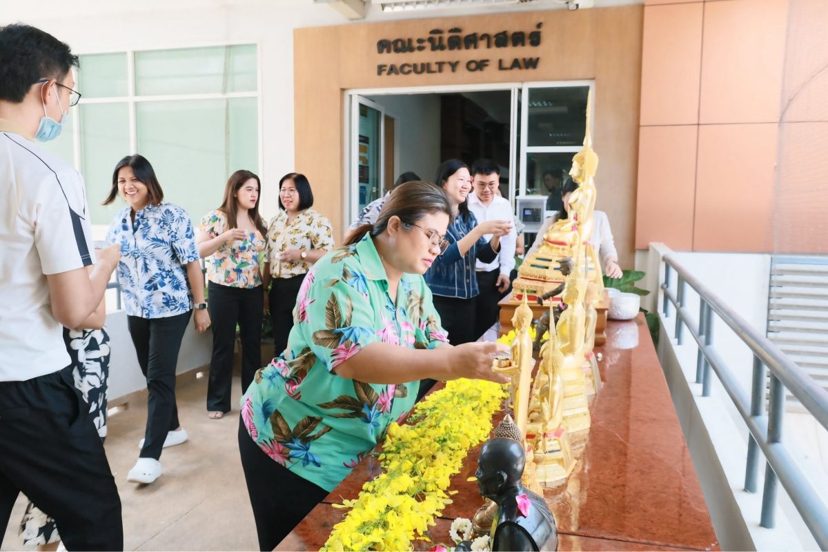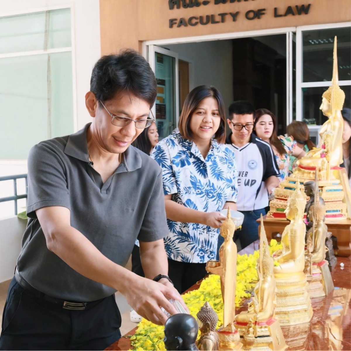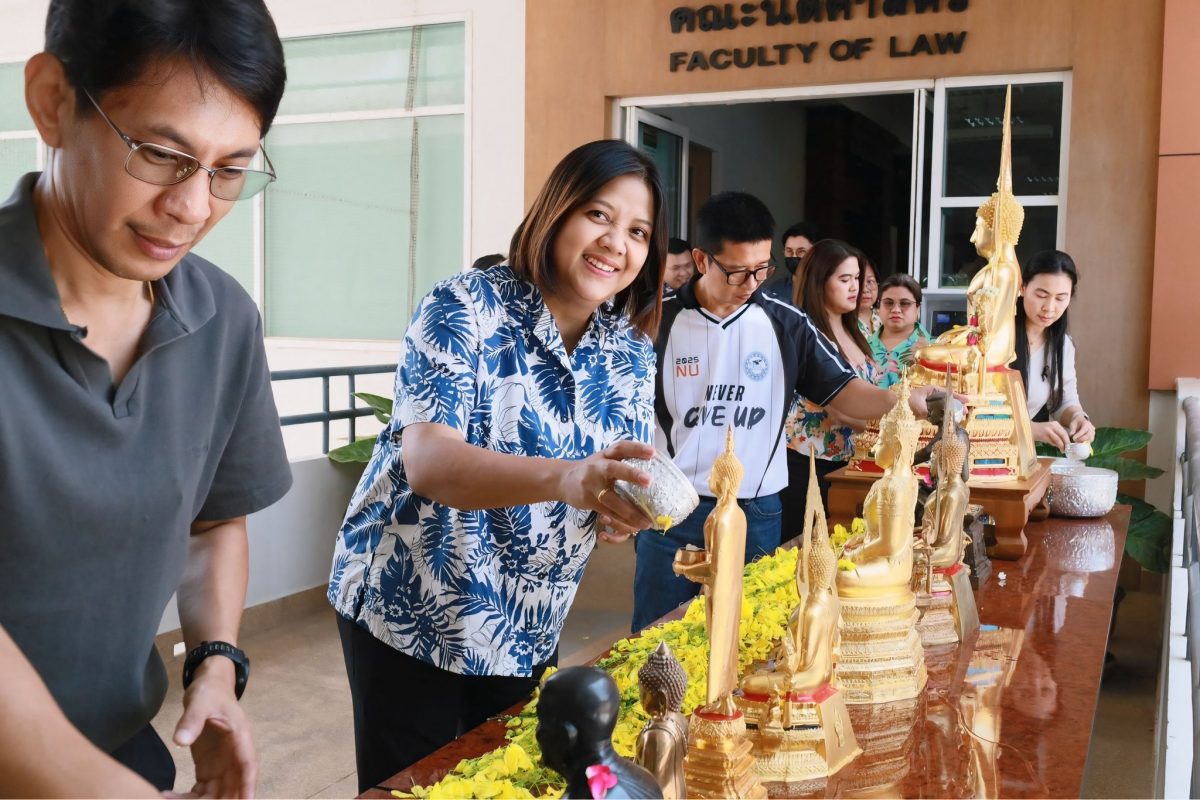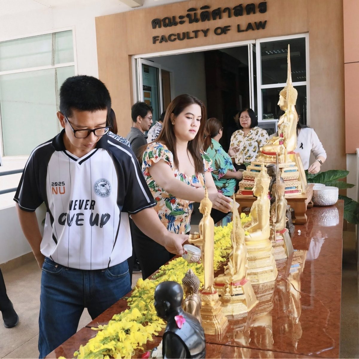 วันที่ 8 เมษายน 2569 รองศาสตราจารย์ ดร.บุญญรัตน์ โชคบันดาลชัย คณบดีคณะนิติศาสตร์ ให้เกียรติเป็นประธานในพิธีสรงน้ำพระพุทธมหามงคลนิติธรรม ซึ่งเป็นพระพุทธรูปประจำคณะนิติศาสตร์ เนื่องในประเพณีสงกรานต์ ประจำปี 2569 โดยมีวัตถุประสงค์เพื่อเป็นการสืบสานประเพณีและวัฒนธรรมอันดีงามของไทยให้คงอยู่สืบไป พร้อมกันนี้ คณาจารย์ และบุคลากร และนิสิตคณะนิติศาสตร์ ได้ร่วมรดน้ำดำหัวเพื่อขอพรจากผู้บริหารคณะ ณ อาคารคณะนิติศาสตร์ ชั้น 4 มหาวิทยาลัยนเรศวร