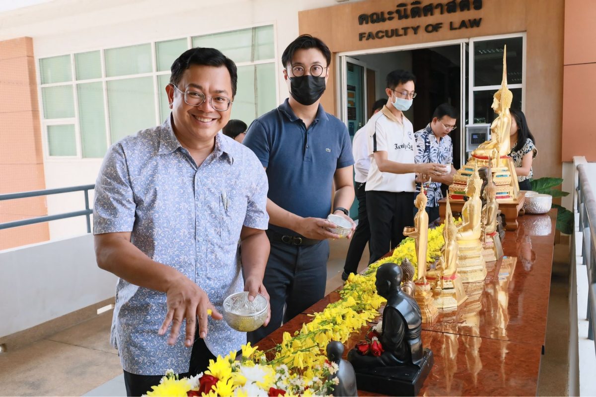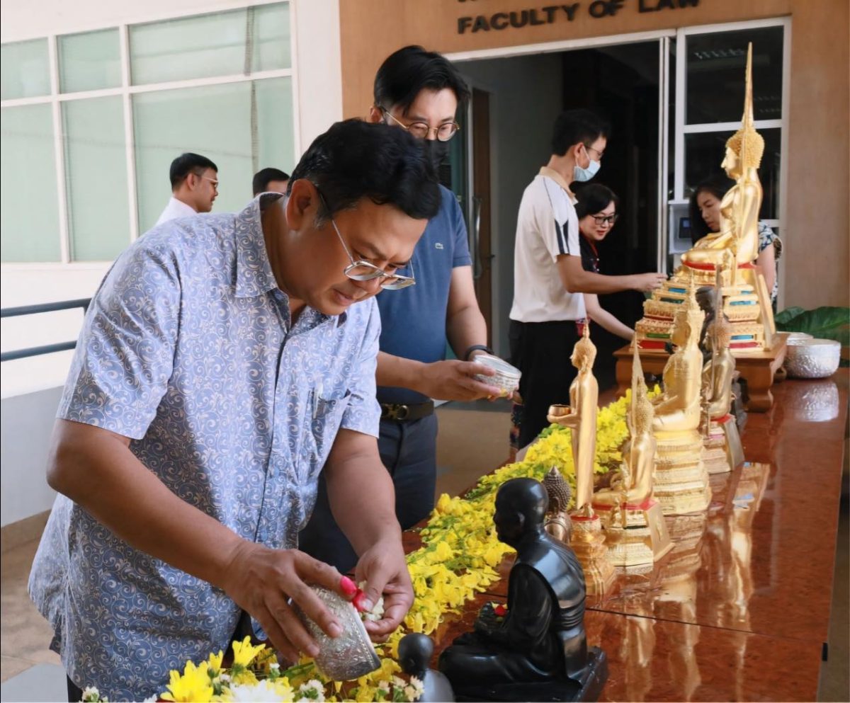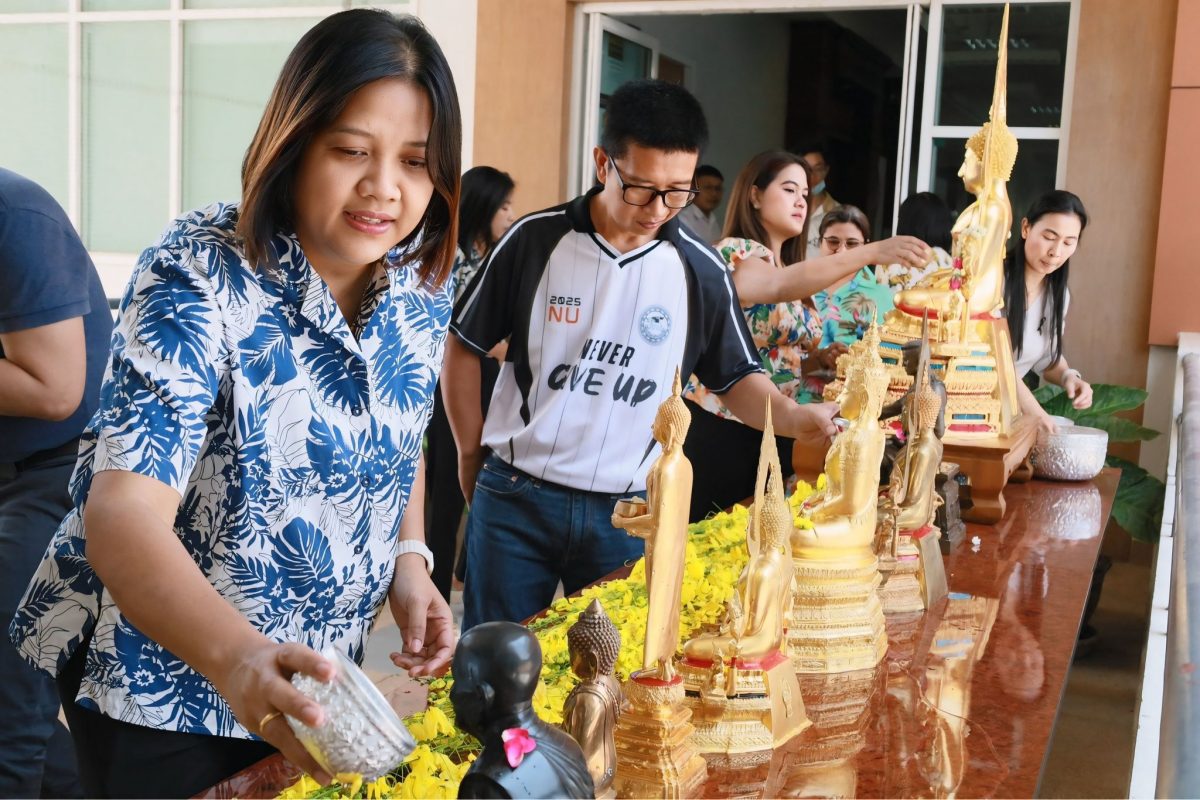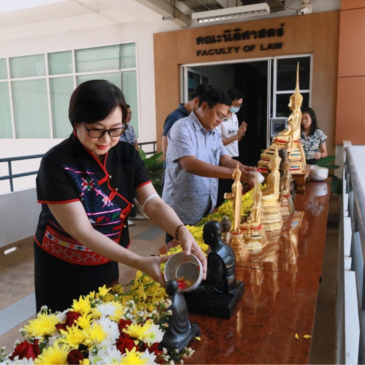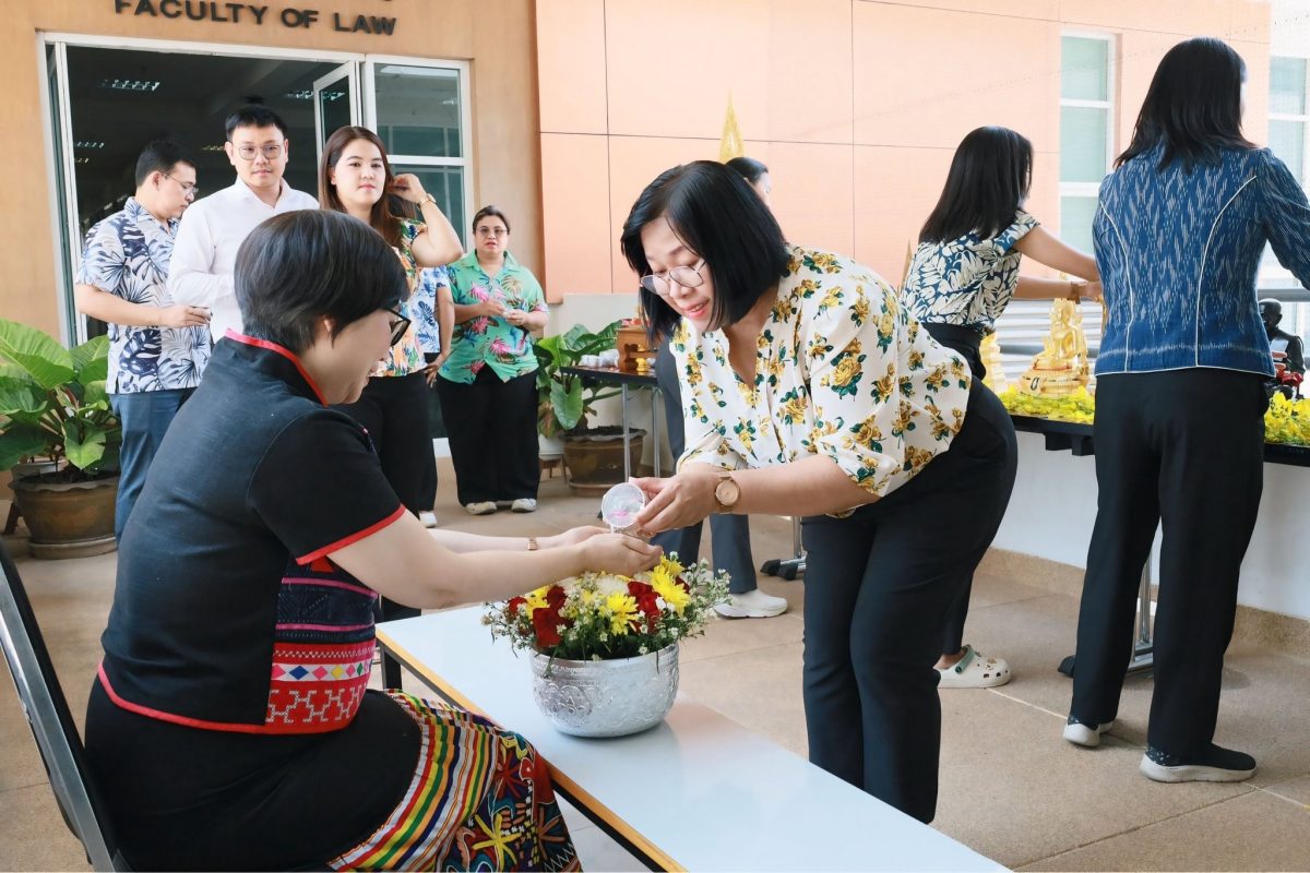 วันที่ 8 เมษายน 2569 รองศาสตราจารย์ ดร.บุญญรัตน์ โชคบันดาลชัย คณบดีคณะนิติศาสตร์ ให้เกียรติเป็นประธานในพิธีสรงน้ำพระพุทธมหามงคลนิติธรรม ซึ่งเป็นพระพุทธรูปประจำคณะนิติศาสตร์ เนื่องในประเพณีสงกรานต์ ประจำปี 2569 โดยมีวัตถุประสงค์เพื่อเป็นการสืบสานประเพณีและวัฒนธรรมอันดีงามของไทยให้คงอยู่สืบไป พร้อมกันนี้ คณาจารย์ และบุคลากร และนิสิตคณะนิติศาสตร์ ได้ร่วมรดน้ำดำหัวเพื่อขอพรจากผู้บริหารคณะ ณ อาคารคณะนิติศาสตร์ ชั้น 4 มหาวิทยาลัยนเรศวร