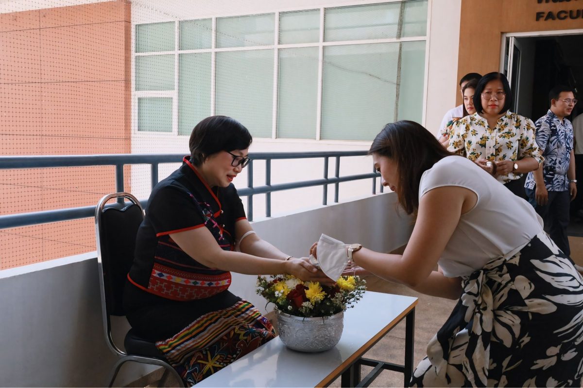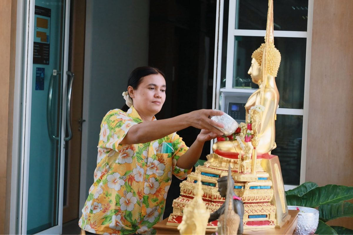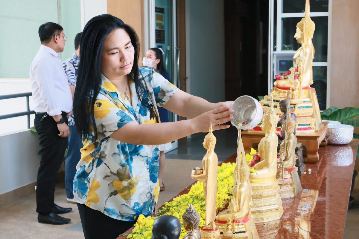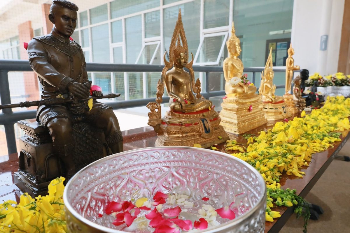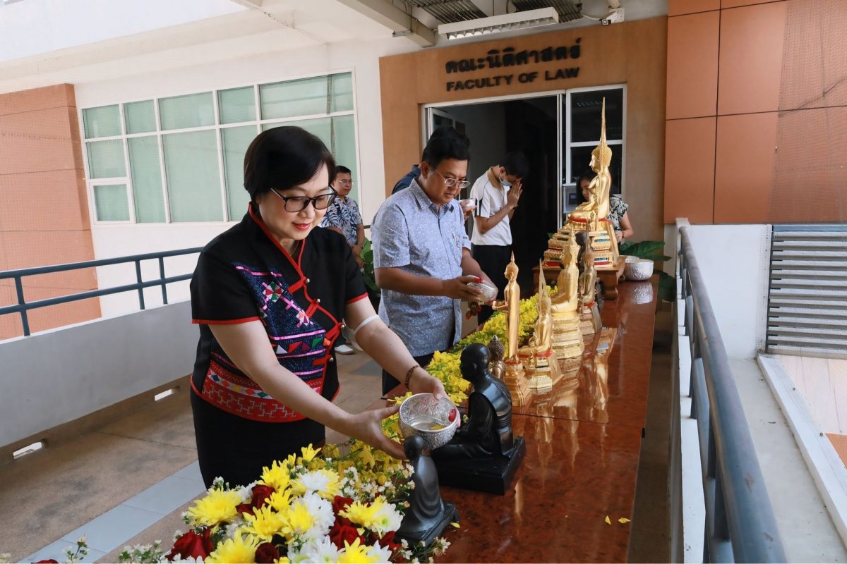 วันที่ 8 เมษายน 2569 รองศาสตราจารย์ ดร.บุญญรัตน์ โชคบันดาลชัย คณบดีคณะนิติศาสตร์ ให้เกียรติเป็นประธานในพิธีสรงน้ำพระพุทธมหามงคลนิติธรรม ซึ่งเป็นพระพุทธรูปประจำคณะนิติศาสตร์ เนื่องในประเพณีสงกรานต์ ประจำปี 2569 โดยมีวัตถุประสงค์เพื่อเป็นการสืบสานประเพณีและวัฒนธรรมอันดีงามของไทยให้คงอยู่สืบไป พร้อมกันนี้ คณาจารย์ และบุคลากร และนิสิตคณะนิติศาสตร์ ได้ร่วมรดน้ำดำหัวเพื่อขอพรจากผู้บริหารคณะ ณ อาคารคณะนิติศาสตร์ ชั้น 4 มหาวิทยาลัยนเรศวร