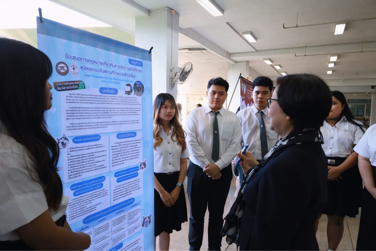 ภาพบรรยากาศการนำเสนองานวิจัยของนิสิตชั้นปีที่ 4 ในรายวิชา 230408 วิจัยทางกฎหมาย ประจำปีการศึกษา 2568