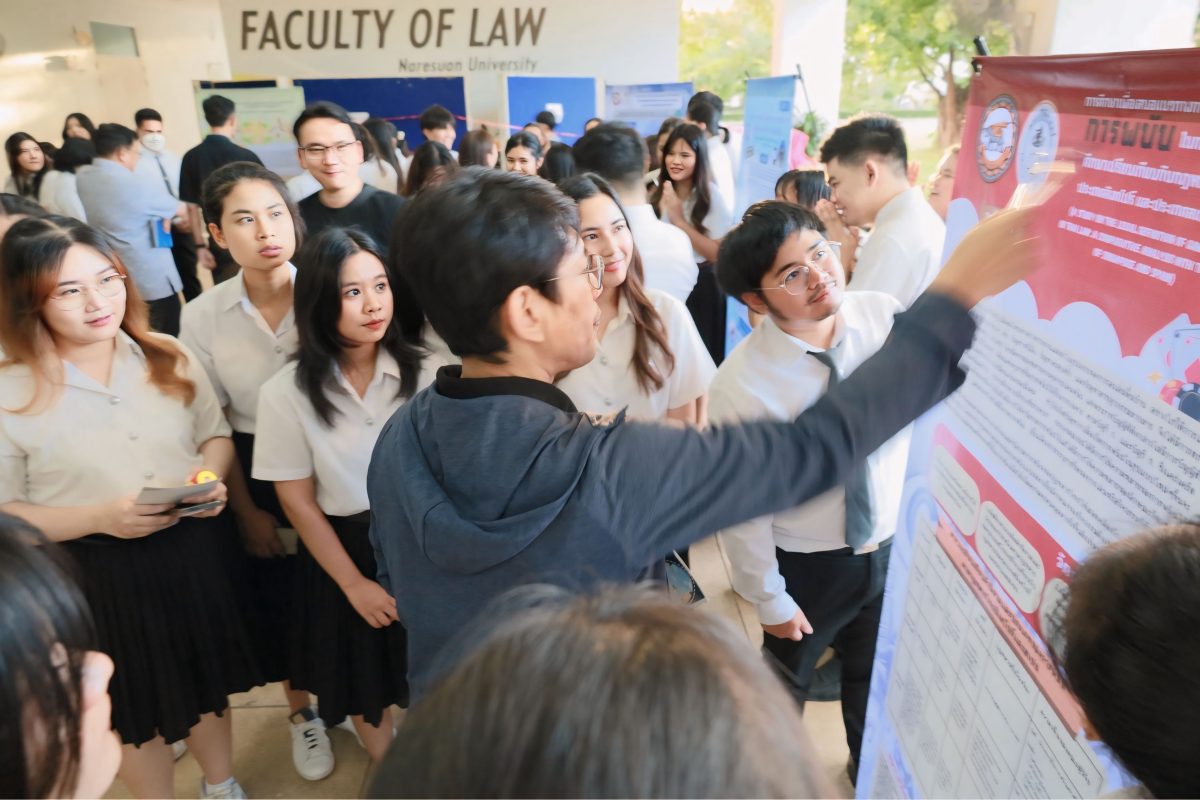 ภาพบรรยากาศการนำเสนองานวิจัยของนิสิตชั้นปีที่ 4 ในรายวิชา 230408 วิจัยทางกฎหมาย ประจำปีการศึกษา 2568