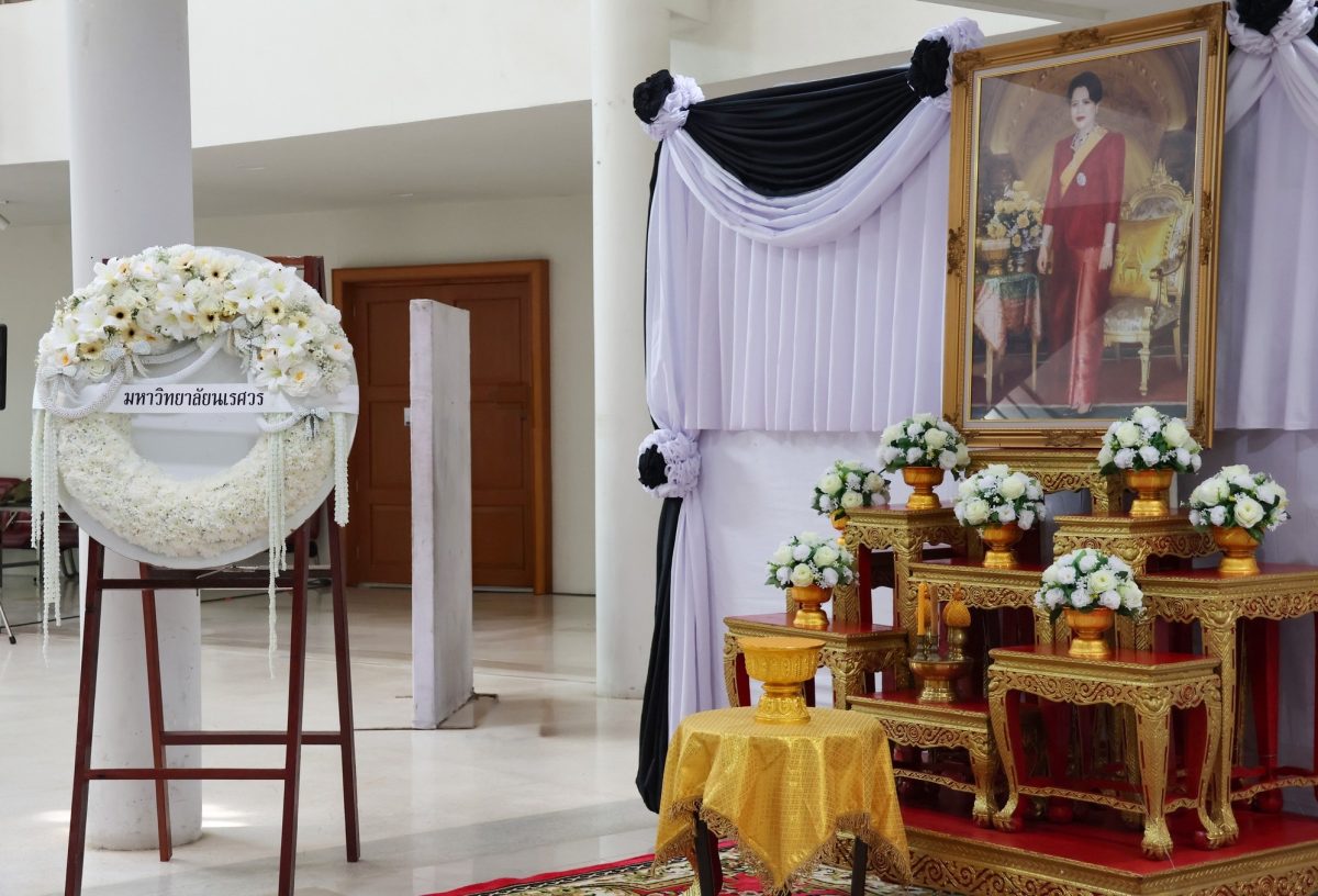 วันที่ 27 ตุลาคม 2568 รองศาสตราจารย์ ดร.บุญญรัตน์ โชคบันดาลชัย คณบดีคณะนิติศาสตร์ พร้อมด้วยผู้บริหาร และบุคลากร เข้าร่วมพิธีถวายความอาลัยและน้อมรำลึกในพระมหากรุณาธิคุณแด่ สมเด็จพระนางเจ้าสิริกิติ์ พระบรมราชินีนาถ พระบรมราชชนนีพันปีหลวง โดยมี ผู้ช่วยศาสตราจารย์ ดร.ภาณุ พุทธวงศ์ รองอธิการบดีฝ่ายบริหาร รักษาราชการแทนอธิการบดีมหาวิทยาลัยนเรศวร เป็นประธานในพิธี ณ บริเวณโถงชั้น 1 อาคารสำนักงานอธิการบดี มหาวิทยาลัยนเรศวร